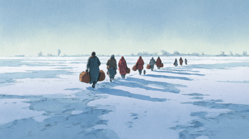 - The settings felt visceral—the frozen land, abandoned houses, refugee city, and ship.